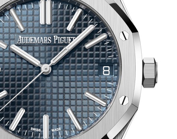 Unworn Audemars Piguet Royal Oak SELFWINDING “50TH ANNIVERSARY” 15510ST.OO.1320ST.01. 41 mm, Bleu nuit nuage 50 dial with “Grande Tapisserie” pattern, white gold applied hour-markers and Royal Oak hands with luminescent coating, Stainless steel case, glareproofed sapphire crystal and caseback, screw-locked crown, 5900 calibre, Selfwinding movement, 70 h power reserve, 32 jewels, Stainless steel bracelet with AP folding clasp. Water resistant to 50 m.