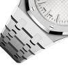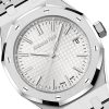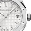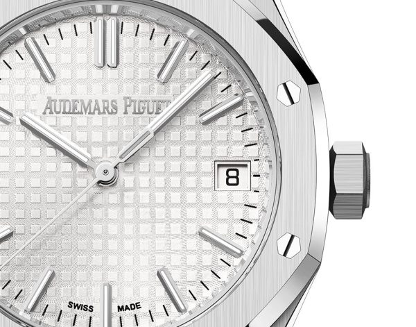 Unworn Audemars Piguet Royal Oak SELFWINDING “50TH ANNIVERSARY” 15550ST.OO.1356ST.01. 37 mm, Silver-toned dial with “Grande Tapisserie” pattern, white gold applied hour-markers and Royal Oak hands with luminescent coating, Stainless steel case, glareproofed sapphire crystal and caseback, 5900 calibre, Selfwinding movement, 60 h power reserve, 29 jewels, Stainless steel bracelet with AP folding clasp. Water resistant to 50 m.