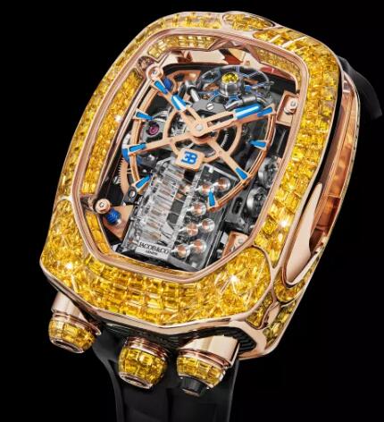 Jacob & Co. BUGATTI CHIRON TOURBILLON BAGUETTE YELLOW SAPPHIRES Watch Replica BU800.40.AB.UA.A Jacob and Co Watch Price