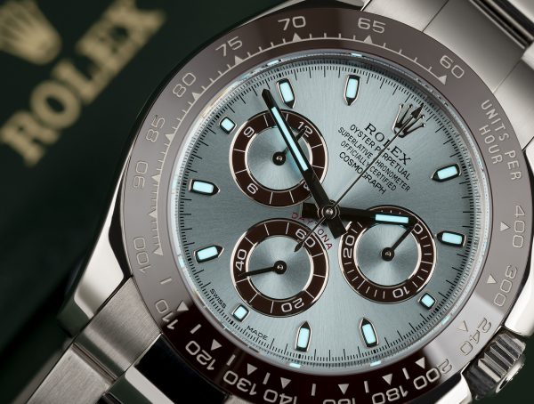 Rare and precious, platinum is striking for its silvery whiteness and vibrant luminosity. It is among the densest and heaviest metals in the world, distinguished by unique chemical and physical properties such as exceptional corrosion resistance. Paradoxically, it is also soft, elastic and highly malleable, which makes machining and polishing especially difficult, demanding an extremely high degree of skill. Rolex always uses 950 platinum, an alloy consisting of 950‰ (thousandths) platinum, painstakingly crafted in-house by the fine metalworkers at Rolex. The noblest of metals for the finest of watches.