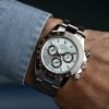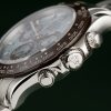 A key part of the model’s identity is the bezel moulded with a tachymetric scale for measuring average speeds of up to 400 miles or kilometres per hour. The monobloc Cerachrom bezel in high-tech ceramic offers a number of advantages: it is corrosion resistant, virtually scratchproof and the colour is unaffected by UV rays. This extremely durable bezel also offers an exceptionally legible tachymetric scale, thanks to the deposition of a thin layer of platinum in the numerals and graduations via a PVD (Physical Vapour Deposition) process. The monobloc Cerachrom bezel is made in a single piece and holds the crystal firmly in place on the middle case, ensuring waterproofness.