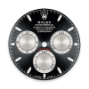 Unworn watch Rolex Cosmograph Daytona 40mm, 18k White Gold, Ref# 126509-0001. Born for motor racing, the watch combines sporty chic with versatility, making it a must-have for lovers of the fast lanes and the finest cars. The luxurious Rolex Cosmograph Daytona is synonymous with excellent workmanship, first-class technical features and unique looks. Proof of this is the stunning Bright black dial and the crisply readable Chromalight display with a long blue glow. Spiral-shaped Silver counters complement it at 3, 6 and 9 o’clock, which record the hours, minutes and seconds from the start of the race. Stylish hour markers, sword-shaped hour and minute hands are filled with high-definition luminescent material. The elegant central seconds hand allows you to count time with an accuracy of 1/8 second. All details are made of 18k White Gold. A well-readable minute scale is applied along the outer contour of the dial. All this charm is complemented by a ribbed, for a comfortable grip, screw-down crown in 18k White Gold with the Rolex logo, which has a triple Triplock water-resistance system. At the 2 and 4 o’clock positions are the chronograph control buttons made of 18k White Gold. The dial is covered with a scratch-resistant sapphire crystal and a solid 18k White Gold case back. The Fixed 18k White Gold monobloc bezel with engraved tachymetric scale enhances the functionality of the watch. The model is equipped with a manufacture Rolex Self-winding mechanical movement Calibre 4131, contains 47 jewels and has an approximate power reserve approximately of 72 hours. This spectacular timepiece is presented on an 18k White Gold Oyster, three-piece solid links bracelet. The 18k White Gold Folding Oysterlock safety clasp with Easylink 5 mm comfort extension link, made using own unique Rolex technologies, guarantees maximum comfort on the wrist. Water resistant up to 100m/330ft (10 ATM).