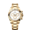 Unworn watch Rolex Cosmograph Daytona 40mm, 18k Yellow Gold, Ref# 126508-0001. Born for motor racing, the watch combines sporty chic with versatility, making it a must-have for lovers of the fast lanes and the finest cars. The luxurious Rolex Cosmograph Daytona is synonymous with excellent workmanship, first-class technical features and unique looks. Proof of this is the stunning bright White dial and the crisply readable Chromalight display with a long blue glow. Spiral-shaped White with Golden trim counters complement it at 3, 6 and 9 o’clock, which record the hours, minutes and seconds from the start of the race. Stylish hour markers, sword-shaped hour and minute hands are filled with high-definition luminescent material. The elegant central seconds hand allows you to count time with an accuracy of 1/8 second. All details are made of 18k Yellow Gold. A well-readable minute scale is applied along the outer contour of the dial. All this charm is complemented by a ribbed, for a comfortable grip, screw-down crown in 18k Yellow Gold with the Rolex logo, which has a triple Triplock water-resistance system. At the 2 and 4 o’clock positions are the chronograph control buttons made of 18k Yellow Gold. The dial is covered with a scratch-resistant sapphire crystal and a solid 18k Yellow Gold case back. The Fixed 18k Yellow Gold monobloc bezel with engraved tachymetric scale enhances the functionality of the watch. The model is equipped with a manufacture Rolex Self-winding mechanical movement Calibre 4131, contains 47 jewels and has an approximate power reserve approximately of 72 hours. This spectacular timepiece is presented on an 18k Yellow Gold Oyster, three-piece solid links bracelet. The 18k Yellow Gold Folding Oysterlock safety clasp with Easylink 5 mm comfort extension link, made using own unique Rolex technologies, guarantees maximum comfort on the wrist. Water resistant up to 100m/330ft (10 ATM).