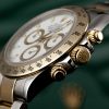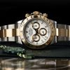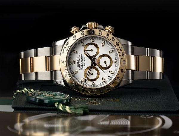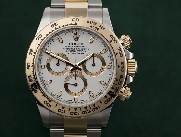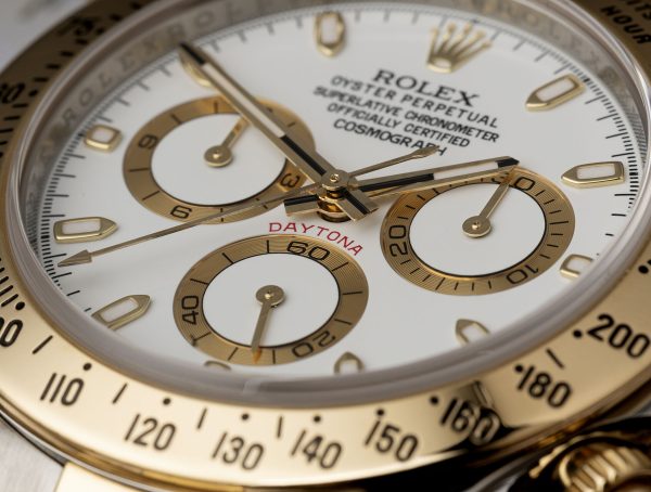 With its tachymetric scale, its three counters and its pushers, the Cosmograph Daytona was designed to be the ultimate timing tool for endurance racing drivers. The bezel features a tachymetric scale to read average speed over a given distance based on elapsed time. This scale offers optimal legibility, making the Cosmograph Daytona the ideal instrument for measuring speeds up to 400 units per hour, expressed in kilometres or miles.