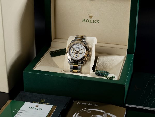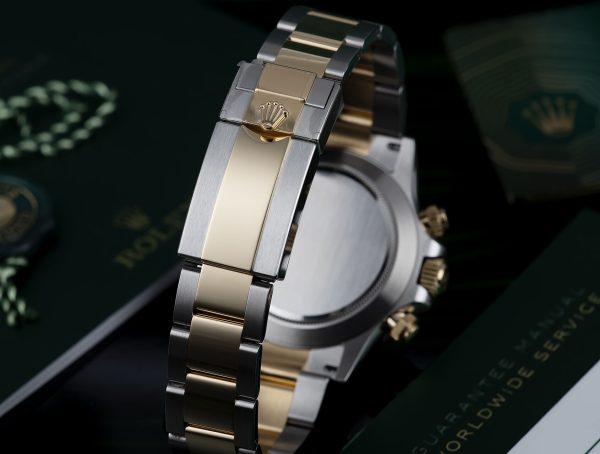 Gold is coveted for its lustre and nobility. Steel reinforces strength and reliability. Together, they harmoniously combine the best of their properties. A true Rolex signature, Rolesor has featured on Rolex models since the early 1930s, and was trademarked as a name in 1933. It is one of the prominent pillars of the Oyster collection.