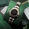 This model features a black dial with snailed counters, gold applique hour markers, and hands with a Chromalight displaya highly legible luminescent material. The central sweep seconds hand allows for an accurate reading of 1/8 second, while the two counters on the dial display the lapsed time in hours and minutes. Drivers can accurately map out their track times and tactics without fail.