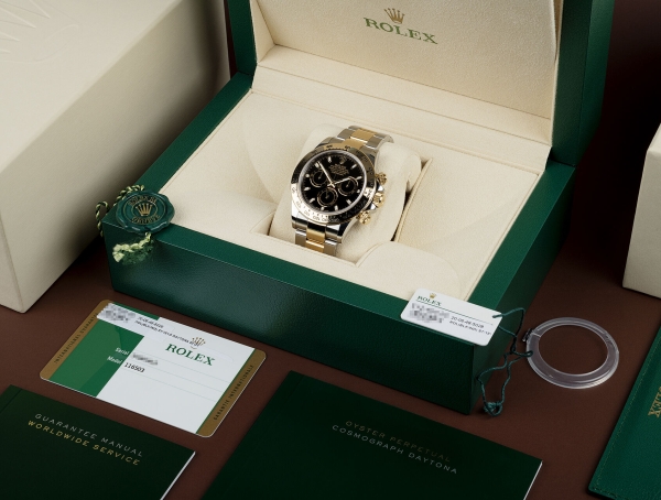 Gold is coveted for its lustre and nobility, while steel reinforces strength and reliability. Together, they harmoniously combine the best of their properties. A true Rolex signature, Rolesor has been featured on Rolex models since the early 1930s and was trademarked as a name in 1933. It is one of the prominent pillars of the Oyster collection.