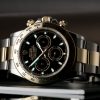 With its tachymetric scale, three counters, and pushers, the Cosmograph Daytona was designed to be the ultimate timing tool for endurance racing drivers. The bezel features a tachymetric scale to read average speed over a given distance based on elapsed time. This scale offers optimal legibility, making the Cosmograph Daytona the ideal instrument for measuring speeds up to 400 units per hour, expressed in kilometres or miles.