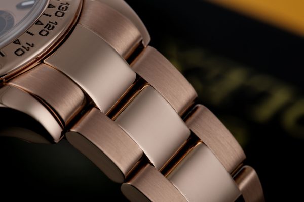 To preserve the beauty of its pink gold watches, Rolex created and patented an exclusive 18 ct pink gold alloy cast in its own foundry: Everose gold. Introduced in 2005, 18 ct Everose is used on all Rolex Oyster models in pink gold.