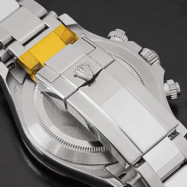 A key part of the model’s identity is the bezel moulded with a tachymetric scale for measuring average speeds of up to 400 miles or kilometres per hour. The monobloc Cerachrom bezel in high-tech ceramic offers a number of advantages: it is corrosion resistant, virtually scratchproof and the colour is unaffected by UV rays. This extremely durable bezel also offers an exceptionally legible tachymetric scale, thanks to the deposition of a thin layer of platinum in the numerals and graduation via a PVD (Physical Vapour Deposition) process. The monobloc Cerachrom bezel is made in a single piece and holds the crystal firmly in place on the middle case, ensuring waterproofness.