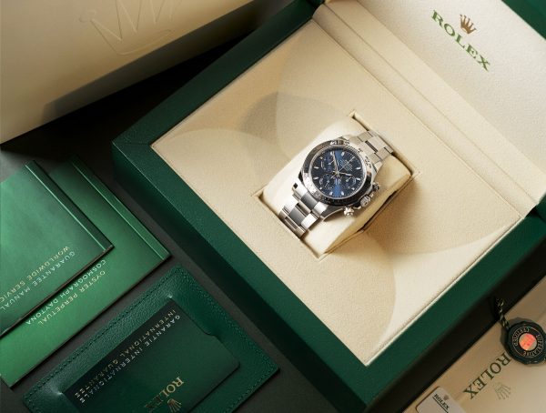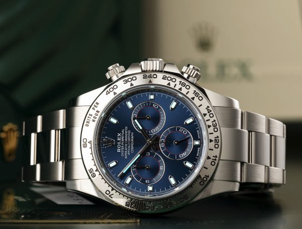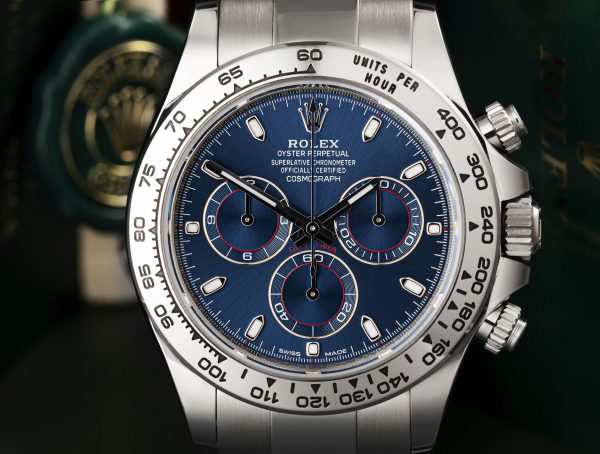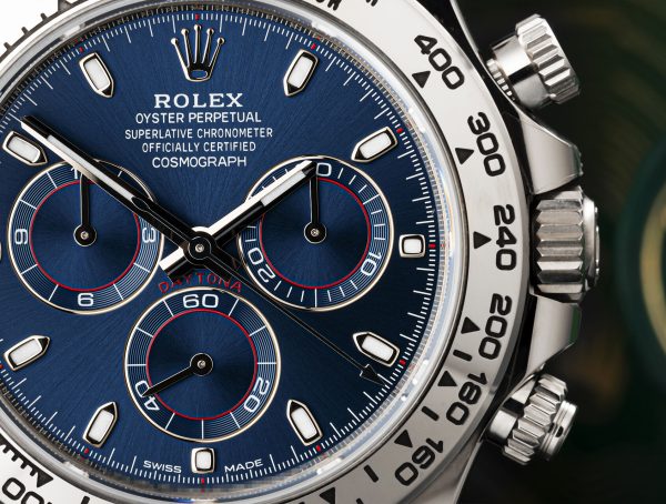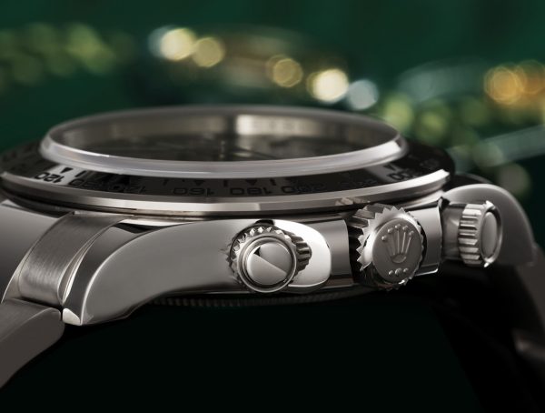 With its tachymetric scale, its three counters and its pushers, the Cosmograph Daytona was designed to be the ultimate timing tool for endurance racing drivers. The bezel features a tachymetric scale to read average speed over a given distance based on elapsed time. This scale offers optimal legibility, making the Cosmograph Daytona the ideal instrument for measuring speeds up to 400 units per hour, expressed in kilometres or miles.