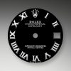 - Dial color: Bright black dial with a applied polished 18k White Gold Roman numerals as hour markers
