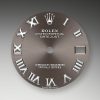 - Dial color: Dark grey dial with a fine sunrays and applied polished 18k White Gold Roman numerals as hour markers