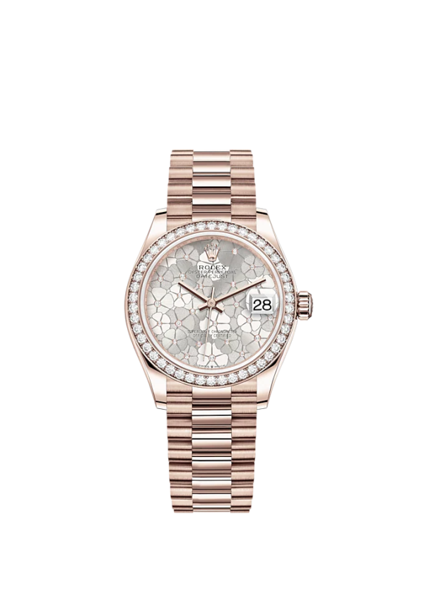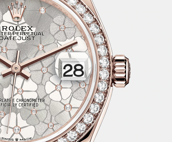 - Dial color: Silver dial with floral motif and 24 Diamonds in 18k Everose Gold settings