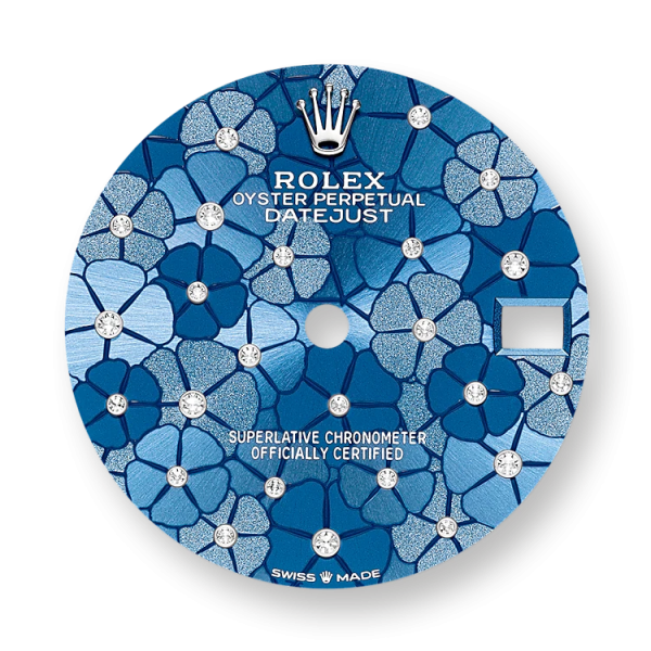 - Dial color: Azzurro blue dial with floral motif and 24 Diamonds in 18k White Gold settings