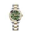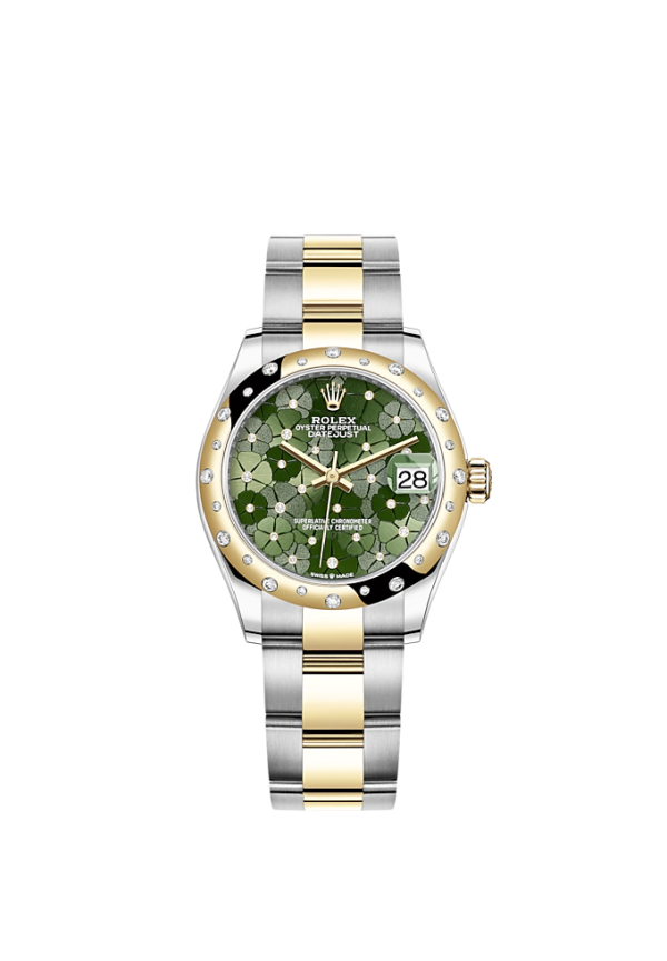 - Dial color: Olive green dial with floral motif and 24 Diamonds in 18k Yellow Gold settings