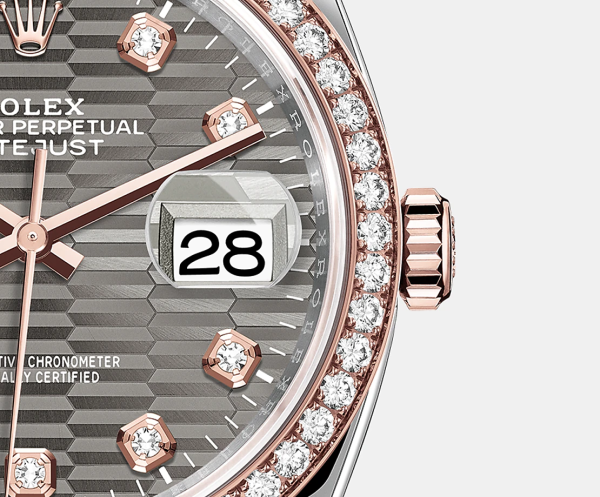 - Dial color: Slate dial with fluted motif and 10 Diamonds as hour markers framed in 18k Everose Gold