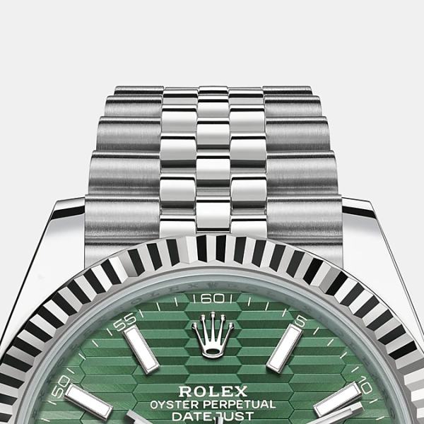 - Case material: White Rolesor – combination of Oystersteel and 18k White Gold