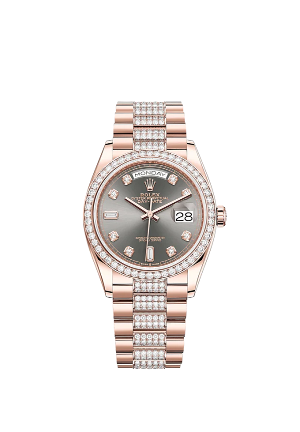 Unworn classic Rolex Day-Date, 36mm, 18k Everose Gold, Ref# 128345rbr-0053 – luxury, elegance and practicality.