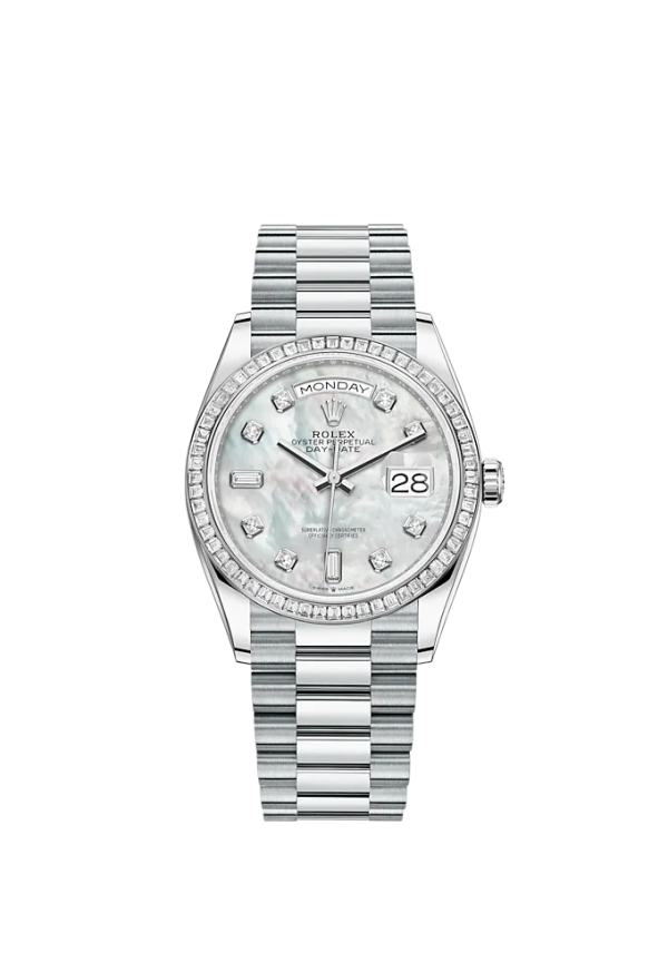 Unworn classic Rolex Day-Date, 36mm, Platinum and Diamonds, Ref# 128396tbr-0005 – luxury, elegance and practicality.