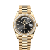 Unworn watch Rolex Day-Date 36, 18k Yellow Gold with Diamond-set, 40mm, Ref# 228348rbr-0043. Prestigious Day-Date watches remain at the cutting edge of modernity, despite the many decades passing by. As always elegant and luxurious, they are an excellent choice for people who value unique beauty, high style and absolute comfort. New for 2023 in the Rolex Day-Date 40 line is a model with a Bright black dial sunray finish creates delicate light, with highly legible Chromalight display with long-lasting blue luminescence. Its classic polished index hour markers and hands made of 18k Yellow Gold with lumins fill look amazing on such a dial, emphasizing the sophistication of the model. The date indicator is traditionally placed at the 3 o’clock position. At the 12 o’clock, position is a semi-circular window showing the day of the week in full, providing an instantly recognizable, unique design of Day-Date. The ribbed screw-down crown in 18k Yellow Gold Triplock with double watertight system, adorned with the Rolex logo, is a traditionally recognizable part of Rolex watches. The dial is covered with a scratch-resistant anti-reflective sapphire crystal and a Cyclops lens above the date with double anti-reflective coating. A solid 18k Yellow Gold screw-down case back with fine fluted edges, closes the movement. The fixed polished 18k Yellow Gold bezel set with 48 diamonds, a chic element that gives the watch a unique brilliance. The in-house Rolex mechanical movement, caliber 3255, contains 31 jewels and has an approximate power reserve of approximately 70 hours powers. This delightful timepiece is presented on an 18k Yellow Gold President bracelet with semi-circular 3-piece links for flawless beauty. It features Rolex’s original concealed folding Crownclasp to secure the watch on your wrist. Water resistant up to 100m/330ft (10 ATM).