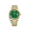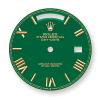 Dial color: Green dial with a applied polished 18k Yellow Gold Roman numerals as hour markers