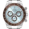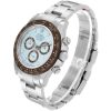Rolex Daytona Ice Blue Dial Platinum Chronograph Mens Watch 116506 . Automatic. Rhodium-plated, 44 jewels, straight line lever escapement, monometallic balance adjusted to temperatures and 5 positions, shock absorber, self compensating free-sprung Breguet balance spring, Microstella regulating screws, hack mechanism. Platinum case 40 mm in diameter. Screwed-down case back, buttons and crown, Triplock winding crown protected by the crown guard. Brown bezel with engraved tachymeter scale. Scratch resistant sapphire crystal. Ice blue dial with luminous platinum hands and hour markers. Minute markers around the outer rim. Three chronograph subdials 60 seconds, 30 minutes, and 1/10th of a second. Platinum oyster bracelet with flip-lock clasp. Fits up to 7 1/4³ wrist.