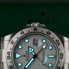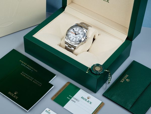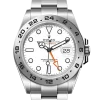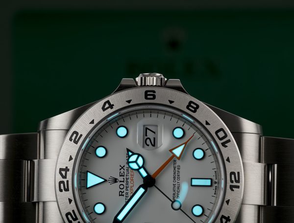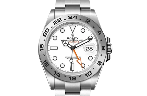 The Explorer II features a date display, an additional orange 24-hour hand and a fixed bezel with 24-hour graduations, enabling day to be distinguished from night. It became the watch of choice for speleologists, volcanologists and polar explorers. Its hour markers and hands feature a highly-legible Chromalight display with long-lasting blue luminescence.