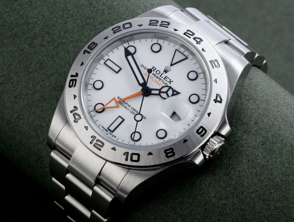 The Explorer II is equipped with an additional 24-hour display; a dedicated hand circles the dial in 24 hours rather than the usual 12, pointing to a fixed bezel with 24 hour graduations. This function enables the wearer to distinguish the hours of the day from the hours of the night, an essential feature for those who venture into environments where darkness reigns supreme – such as in the depths of caves, or where the sun never sets – like the polar regions in summer.
