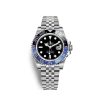 Rolex GMT-Master II watch of Stainless steel case with polished finished edges and a brushed/satin finished top. This model has Black dial with a polished 18k White Gold hour and minute hands in Mercedes-logo and Breguet-style sword shape with luminous fill. Polished 18k White Gold seconds hand. Applied polished 18k White Gold rimmed index doty hour markers with luminous fill. Fine printed minute/seconds track on the dial rim. Highly legible Chromalight display with long-lasting blue luminescence. Date window displayed at the 3 o’clock position with a cyclops magnifier. Polished Stainless steel patented “Triplock” locking crown ensuring that the crown screws down onto the Oyster case as securely as a submarine hatch. The dial closed by a Scratch-resistant Sapphire Crystal and solid case back made. GMT/2nd Time Zone Function: the blue hand indicates GMT/Dual Time zone with a luminous filled arrowhead tip pointing to the 24 hour indications on the bezel. Besides the watch has instantaneous date and Stop-seconds for precise time setting. The watch is equipped polished Stainless steel bidirectional rotating bezel with a ribbed edge for a sure grip and 24-hour markings. He has ‘BATMAN’ blue and black Cerachrom insert in ceramic and matte platinum coated Arabic Numerals and graduating indexes. The movement is mechanical self-winding 3285, containing 31 Jewels and 70 hours of power reserve. This model presented on a Rolex Jubilee bracelet of brushed Stainless Steel outer links and polished Stainless Steel three middle links with folding Oysterlock safety clasp with Easylink 5 mm comfort extension link. The water resistance is up to 100 meters/330 feet.
