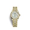 - Dial color: White mother-of-pearl dial with a fine sunrays and 10 Diamonds as hour markers framed in 18k Yellow Gold