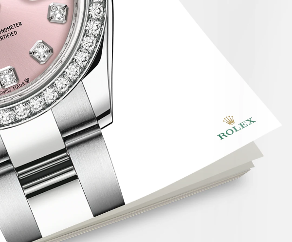 - Dial color: Pink dial with a fine sunrays and 10 Diamonds as hour markers framed in 18k White Gold