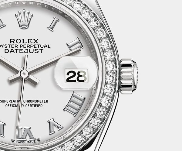 - Crystal: Scratch-resistant sapphire, Cyclops lens over the date