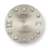 - Dial color: Silver dial with a fine sunrays and Nine diamonds set in star-shaped framed in 18k White Gold settings and 8 diamonds set in Roman numeral IX framed in 18k White Gold