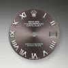 - Dial color: Dark grey dial with a fine sunrays and a applied polished 18k White Gold Roman numerals as hour markers