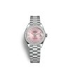 - Dial color: Pink dial with a fine sunrays and a applied polished 18k White Gold Roman numerals as hour markers