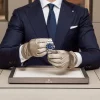 - Bezel: Unidirectional 18k white gold bezel with sapphire stones