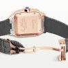 Cartier Santos de Cartier Large Automatic 18ct Rose Gold Watch WGSA0019. 18ct rose gold 47.5mm x 39.8mm case and set bezel all on a grey alligator leather strap and comes complete with an additional blue leather strap. This watch features a silver sunray dial with blued hands and black hour numerals. Water resistant up to 100m and sapphire crystal glass. Calibre 1847 MC automatic movement.