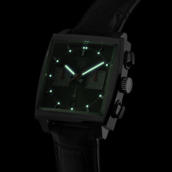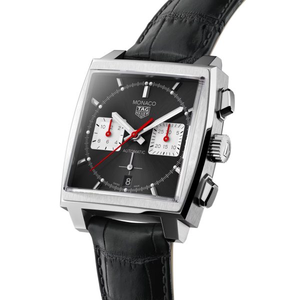The TAG Heuer Monaco 39mm is a tribute to Aryton Senna, featuring a black dial in a distinctive square case & leather strap. Buy now at Gregory Jewellers.